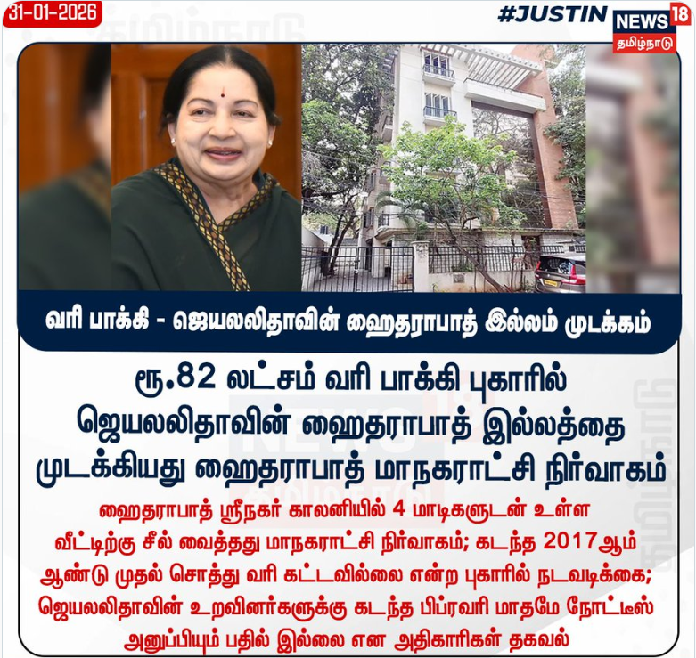 #வரி பாக்கி - ஜெயலலிதாவின் ஹைதராபாத் இல்லம் முடக்கம்