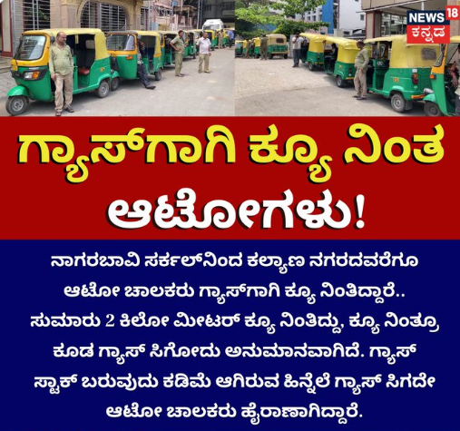 ಕ್ಯೂ ನಿಂತ್ರೂ ಆಟೋಗಳಿಗೆ ಸಿಕ್ತಿಲ್ಲ ಗ್ಯಾಸ್!