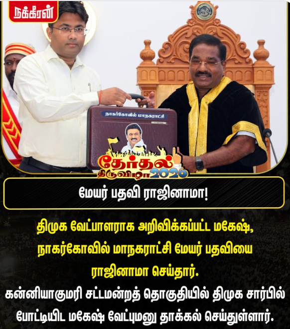 #திமுக வேட்பாளராக அறிவிக்கப்பட்ட மகேஷ், நாகர்கோவில் மாநகராட்சி மேயர் பதவியை ராஜினாமா செய்தார்