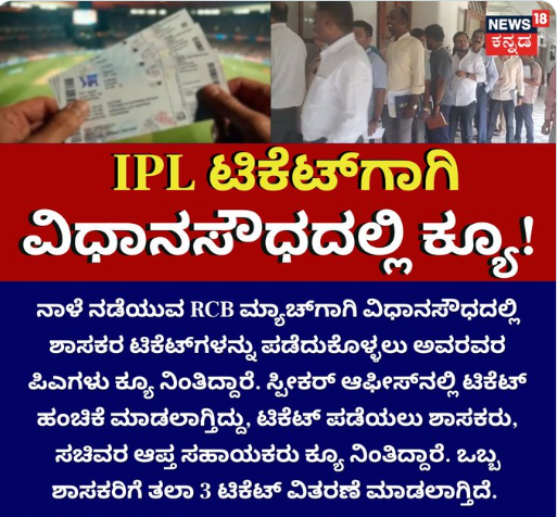 ಶಾಸಕರ IPL ಟಿಕೆಟ್ಗಾಗಿ ವಿಧಾನಸೌಧದಲ್ಲಿ ಕ್ಯೂ ನಿಂತ ಪಿಎಗಳು!