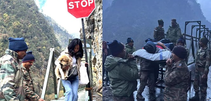 சில நாட்களுக்கு முன்பு, வடக்கு சிக்கிமின் லாச்சென் பகுதியில் லாச்சென்-சுங்தாங் சாலை நிலச்சரிவால் கடுமையாக சேதமடைந்தது. நிலச்சரிவு காரணமாக அங்கிருந்து வெளியேற முடியாமல் சிக்கிக்கொண்ட சுற்றுலாப் பயணிகளை இந்திய ராணுவத்தின் போராடி மீட்டுள்ளது.