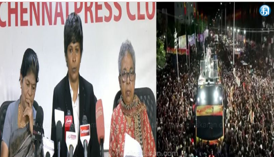 சென்னை: கரூர் துயர சம்பவத்துக்கு யாருடைய சதியும் உள்நோக்கமோ இல்லை என்று உண்மை கண்டறியும் குழு தகவல் தெரிவித்துள்ளது. பெண்கள் பாதுகாப்பு மற்றும் பாலின நீதிக் கூட்டியக்கம் சார்பில் கரூர் துயரம் தொடர்பாக உண்மை கண்டறியும் குழு அறிக்கை வெளியிட்டுள்ளது.
