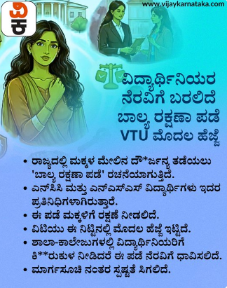 ವಿದ್ಯಾರ್ಥಿನಿಯರ ನೆರವಿಗೆ ಬರಲಿದೆ ಬಾಲ್ಯ ರಕ್ಷಣಾ ಪಡೆ: ವಿಟಿಯು ಮೊದಲ ಹೆಜ್ಜೆ