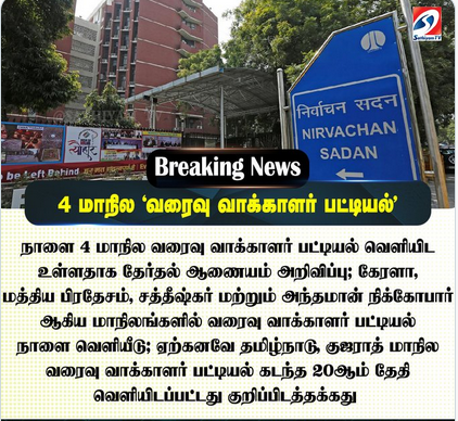 நாளை 4 மாநில வரைவு வாக்காளர் பட்டியல் வெளியிட உள்ளதாக தேர்தல் ஆணையம் அறிவிப்பு