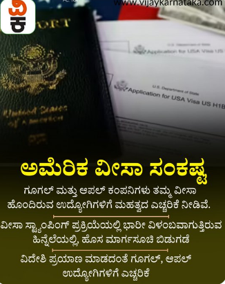 ಅಮೆರಿಕ ವೀಸಾ ಸಂಕಷ್ಟ: ವಿದೇಶಿ ಪ್ರಯಾಣ ಮಾಡದಂತೆ ಗೂಗಲ್, ಆಪಲ್ ಉದ್ಯೋಗಿಗಳಿಗೆ ಎಚ್ಚರಿಕೆ