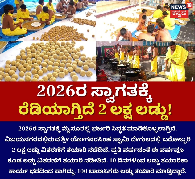 Mysuru | 2026ರ ಸ್ವಾಗತಕ್ಕೆ ಮೈಸೂರಲ್ಲಿ 100 ಬಾಣಸಿಗರಿಂದ 2 ಲಕ್ಷ ಲಡ್ಡು ತಯಾರಿ!
