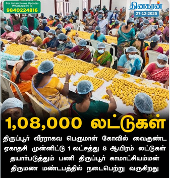 திருப்பூர் வீரராகவ பெருமாள் கோவில் வைகுண்ட ஏகாதசி முன்னிட்டு லட்டுகள் தயாரிக்கும் பணி தீவிரம்