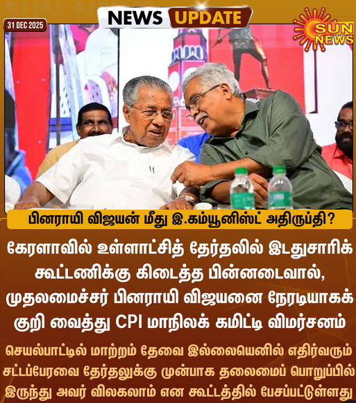 உள்ளாட்சித் தேர்தலில் பின்னடைவு - பினராயி விஜயனின் தலைமையை மாற்றக் கோரும் இந்திய கம்யூனிஸ்ட்