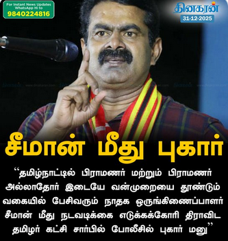 சீமான் மீது நடவடிக்கை எடுக்கக்கோரி போலீசில் புகார்