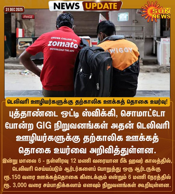 புத்தாண்டை ஒட்டி டெலிவரி ஊழியர்களுக்கு சர்ப்ரைஸ் கொடுத்த நிறுவனங்கள்