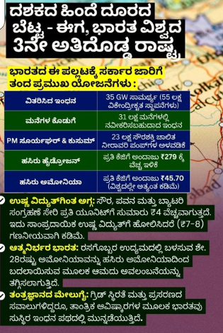 ನವೀಕರಿಸಬಹುದಾದ ಇಂಧನ ಕ್ಷೇತ್ರದಲ್ಲಿ ಭಾರತಕ್ಕೆ ವಿಶ್ವದ 3ನೇ ಸ್ಥಾನ;