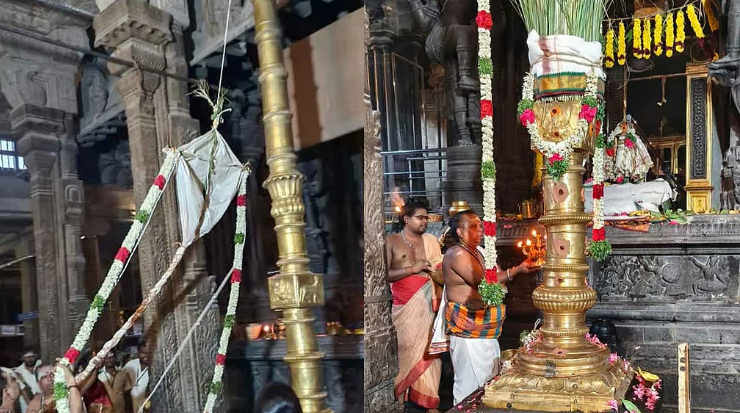 தொடர்ந்து கொடி மரத்திற்கு சிறப்பு அலங்காரம் செய்யப்பட்டு மஞ்சள், பால், இளநீர் உள்ளிட்ட பல்வேறு வகையான அபிஷேக திரவியங்கள் கொண்டு சிறப்பு அபிஷேகமும், மகா தீபாராதனையும் நடைபெற்றது. இதில் திரளான பக்தர்கள் கலந்து கொண்டு சுவாமி தரிசனம் செய்தனர். திருவிழாவின் சிகர நிகழ்ச்சியாக வருகிற 25-ந்தேதி வேணுவனத்தில் வேணுவ நாதர் தோன்றிய வரலாற்று திருவிளையாடல் நிகழ்வும், வருகிற 31-ந்தேதி பங்குனி உத்திர செங்கோல் வழங்கும் விழாவும் நடைபெறுகிறது.
