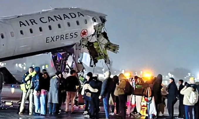 ಕೆನಡಾದಿಂದ ಆಗಮಿಸಿದ ಏರ್ ಕೆನಡಾ ಎಕ್ಸ್ಪ್ರೆಸ್ (Air Canada Express) ವಿಮಾನವು ರನ್ವೇಯಲ್ಲಿ ಚಲಿಸುತ್ತಿದ್ದ ಅಗ್ನಿಶಾಮಕ ದಳದ ವಾಹನಕ್ಕೆ ನೇರವಾಗಿ ಡಿಕ್ಕಿ ಹೊಡೆದಿದೆ. ಈ ಘಟನೆಯಲ್ಲಿ ಹಲವು ಪ್ರಯಾಣಿಕರು ಹಾಗೂ ಸಿಬ್ಬಂದಿ ಗಾಯಗೊಂಡಿದ್ದಾರೆ ಎಂದು ವರದಿಯಾಗಿದೆ.