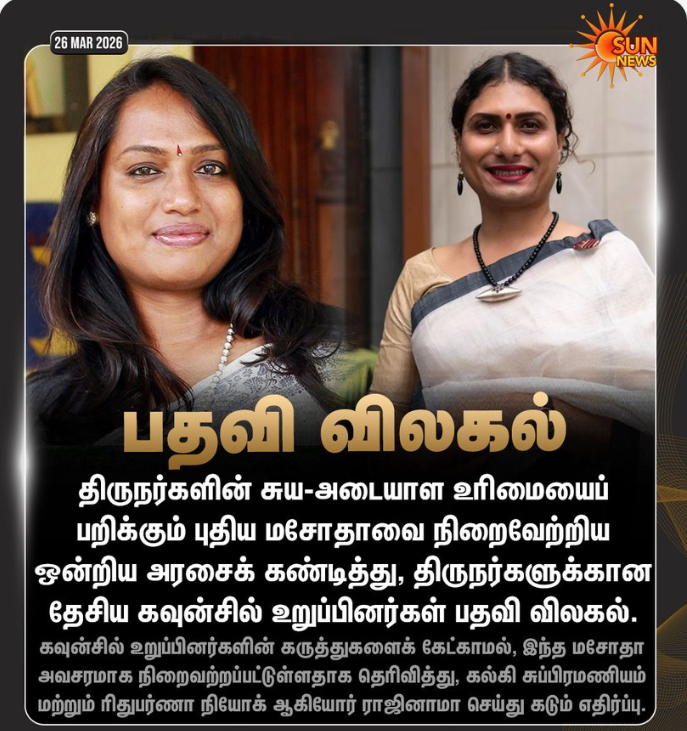 #ஒன்றிய அரசைக் கண்டித்து திருநர்களுக்கான தேசிய கவுன்சில் உறுப்பினர்கள் ராஜினாமா!