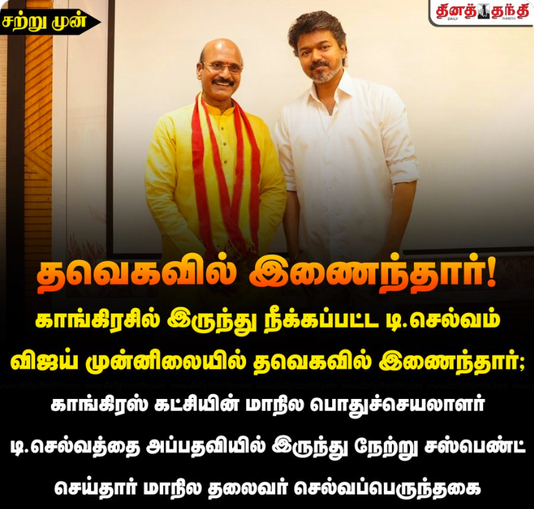 #காங்கிரசில் இருந்து நீக்கப்பட்ட டி.செல்வம் தவெகவில் இணைந்தார்