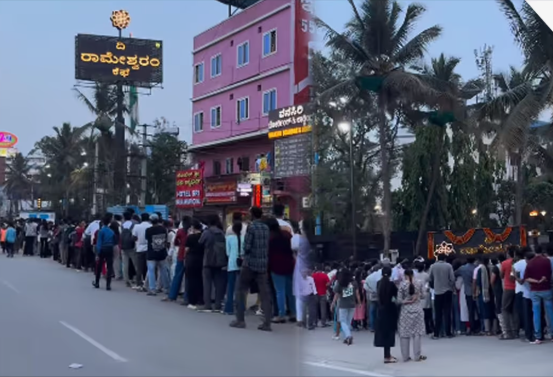 ನಂಗೂ ಫ್ರೀ, ನಿಂಗೂ ಫ್ರೀ ಎಂದ ರಾಮೇಶ್ವರಂ ಕೆಫೆ: ಸುಡು ಬಿಸಿಲನ್ನೂ ಲೆಕ್ಕಿಸದೆ ಪಾಪ ಹೇಗೆ ನಿಂತಿದ್ದಾರೆ ನೋಡಿ ಜನ